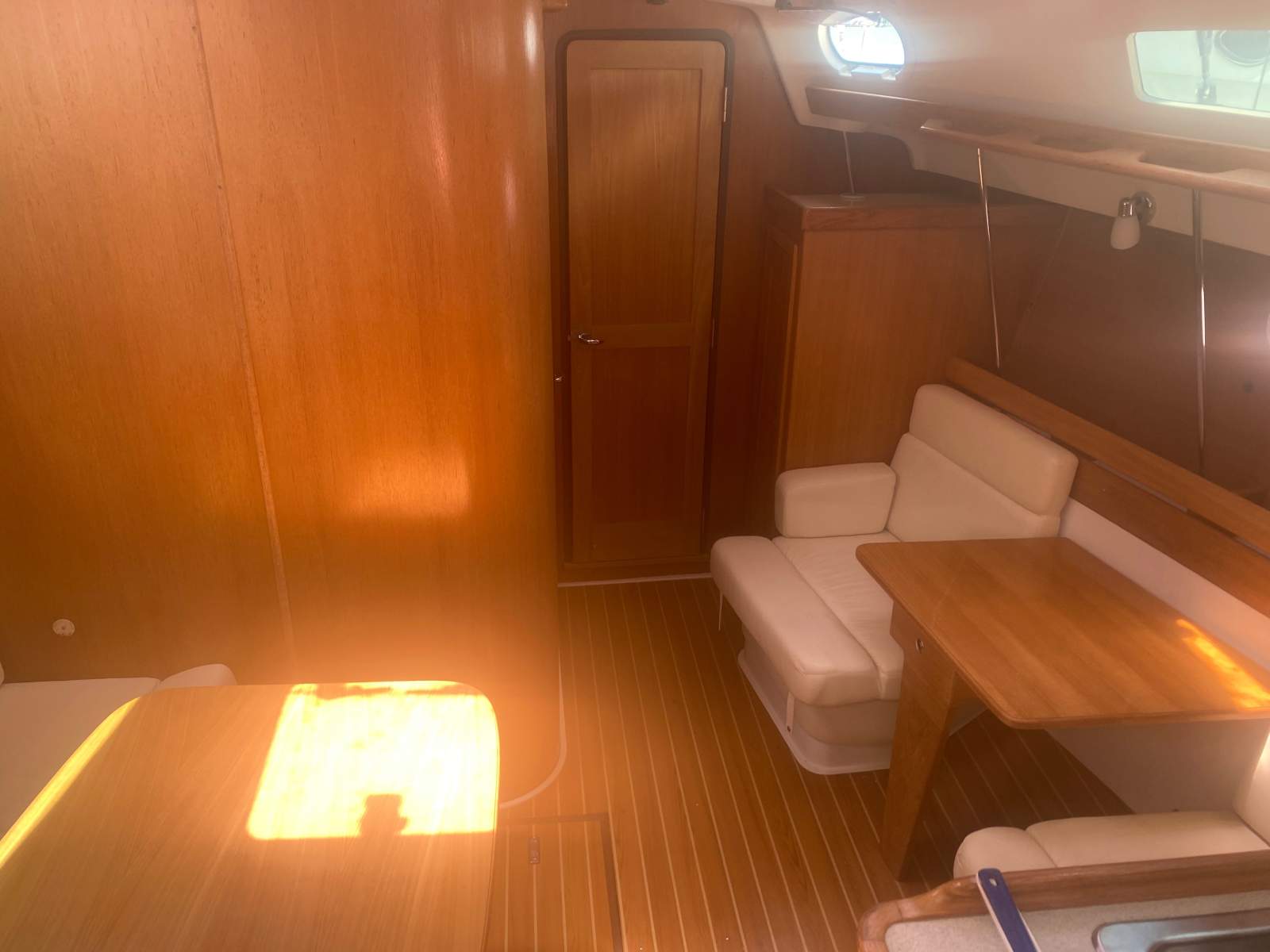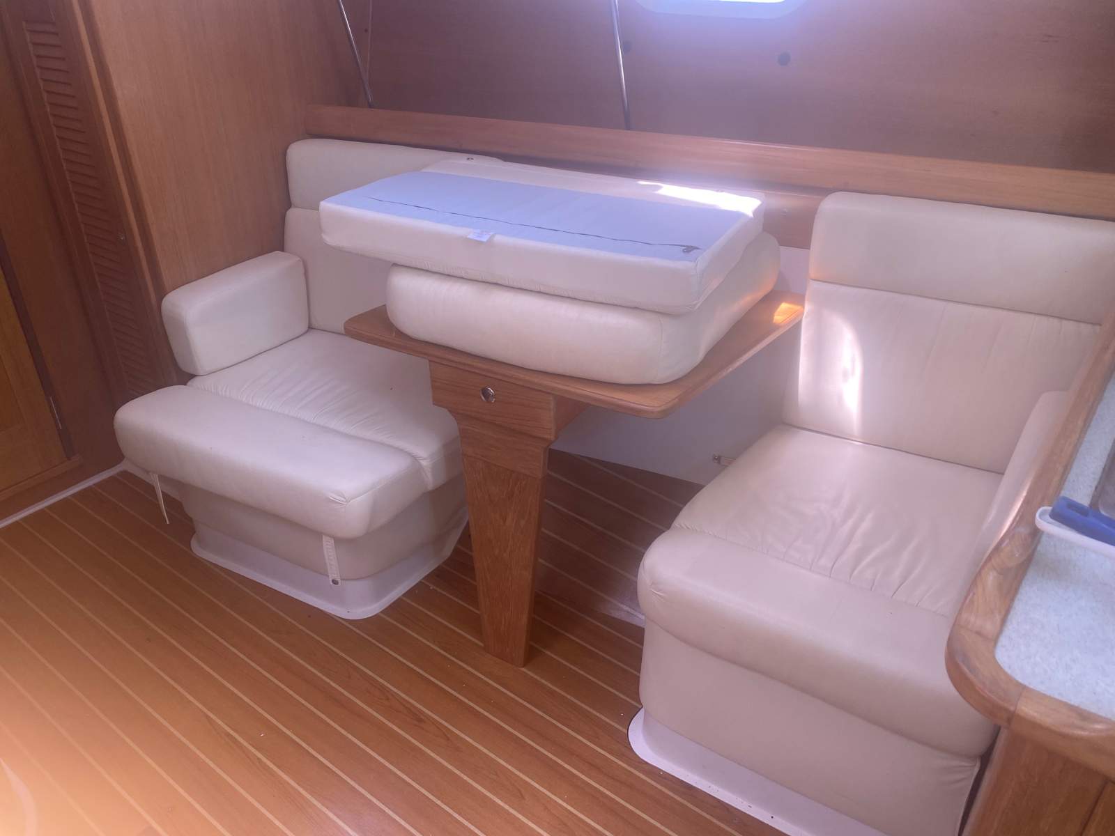 Cockpit table, cushions, custom stainless steel dinghy davits, barbeque; Harken self tailing winches x4- stbd halyard winch is electric; raised detachable helm seat